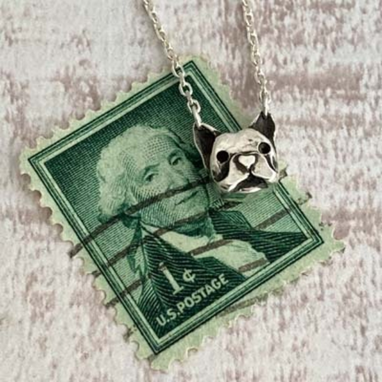 フレンチブルドッグの顔を立体的に製作した小さなペンダント。
