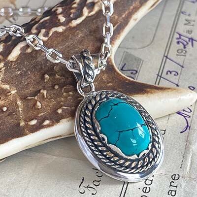 銀線を撚って作ったヨリ線を2本使い、石の周りを飾りました。