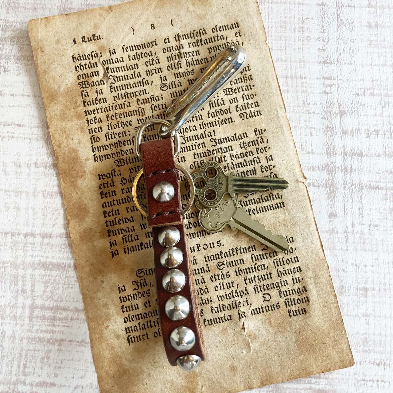 スタッズ付きキーフック(茶)